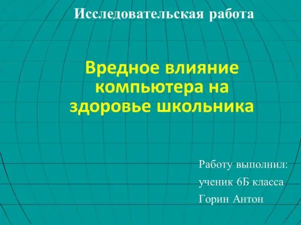 В данной работе рассказывается о влиянии компьютера на здоровье человека, о заболеваниях, возникающих при длительной работе за компьютером и о том, как обезопасить себя, когда приходиться иметь дело с компьютером или электромагнитными полями.