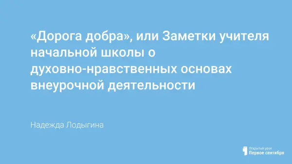 Современный мир чаще утверждает ценность успешности личности, её востребованности и популярности. В погоне за самореализацией человек неминуемо рискует потерять нравственные ориентиры добра. Перед современным учителем начальной школы стоит серьёзная задача: показать ребёнку дорогу добра, научить его в выборе опираться на лучшие нравственные качества человека, научить принимать верные решения.