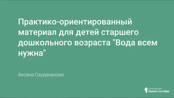 Программное содержание: дать представление о значении воды для всего живого на Земле, о ее источниках, о необходимости бережливого отношения к воде.