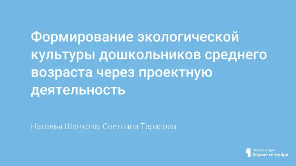 Формирование экологической культуры дошкольников среднего возраста через проектную деятельность
