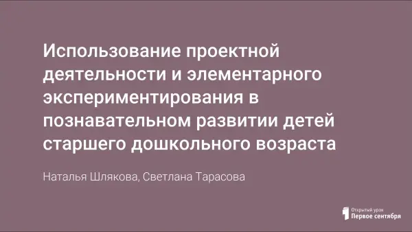 Использование проектной деятельности и элементарного экспериментирования в познавательном развитии детей старшего дошкольного возраста