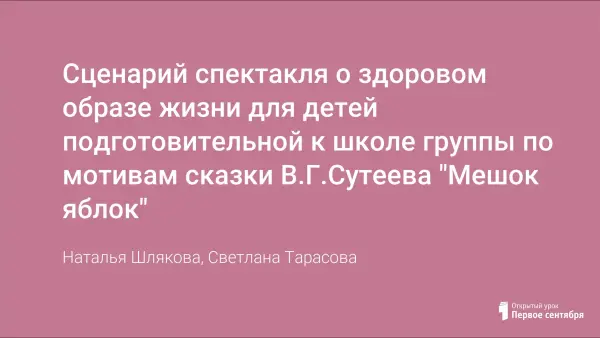 Сценарий спектакля о здоровом образе жизни для детей подготовительной к школе группы по мотивам сказки В.Г.Сутеева "Мешок яблок"
