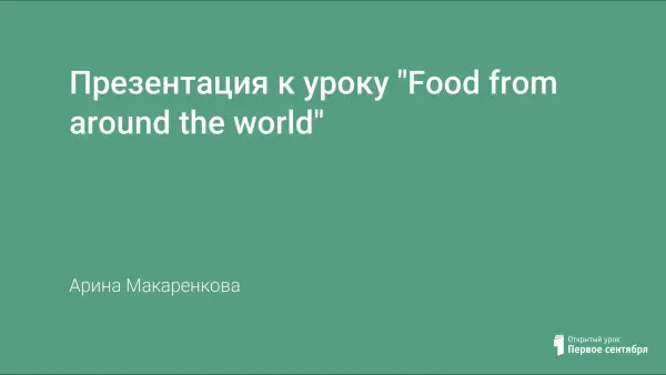 Презентация знакомит учащихся с кухней разных стран мира. Данную презентацию можно использовать как в качестве дополнительного материала к учебнику Starlight 6 раздел 2, так и с любым другим учебником, изучая тему «Еда». Презентация расширяет словарный запас по теме и включает названия продуктов и блюд, приготовление еды. Задания направлены на развитие навыков ознакомительного чтения и говорения (монолог–сообщение). Видеоматериал развивает навыки аудирования с выборочным извлечением информации.