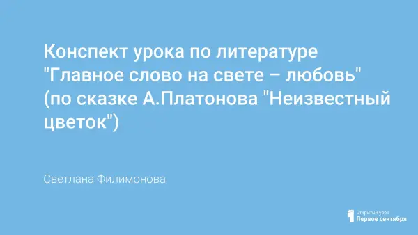 Цель урока: доказать, что "Главное слово на свете – любовь", анализируя сказку А.Платонова "Неизвестный цветок".