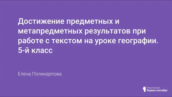 Организация работы ученика с текстом учебника является важной задачей учителя и учителя географии в том числе, решение которой позволит достичь результатов, обозначенных в стандарте. В статье рассказывается о работе с текстом на уроках географии в 5-м классе как о средстве достижения предметных и метапредметных результатов.