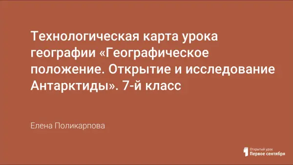 Данный урок является первым в изучении темы «Антарктида» раздела курса «Материки и океаны». Урок тесно связан с предыдущими уроками курса, так как учащиеся делают описание географического положения, истории исследования материка по ранее изученному типовому плану. Учащиеся выполняли самостоятельную работу с контурными картами по нанесению географических объектов вдоль береговой линии материка.
