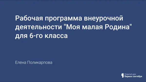 Цель программы внеурочной деятельности привитие любви к малой Родине, гражданской ответственности, чувства патриотизма, формирование позитивного отношения к базовым ценностям общества на основе изучения географии, истории и культуры родного края. Внеурочная деятельность по данной программе осуществляется в форме школьного научного общества «Клуб географов – краеведов».