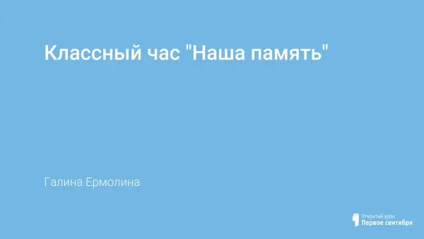 Открытый классный час «Наша память» проводился в 10-м классе и посвящен памяти погибших воинов-афганцев. При его проведении использовался краеведческий материал.