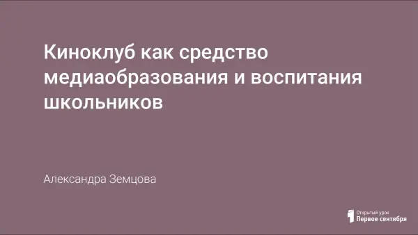 В соответствии с Федеральным государственным образовательным стандартом, общекультурное (художественно-эстетическое) направление можно реализовать на внеурочных занятиях школьного киноклуба. Быстрое развитие информационно-коммуникативных технологий и средств мультимедиа, массовое оснащение школ компьютерной техникой, создают благоприятную среду для практического воплощения идеи школьного киноклуба как средства медиобразования и воспитания учащихся. Целью медиаобразования является развитие медиакомпетентности школьников, творческой активности, способности мыслить критически, умений сравнивать и оценивать сообщения, передающиеся по каналам медиа, привитие эстетических идеалов, обучение способам современной коммуникации, подготовка к жизни в современных информационных условиях.