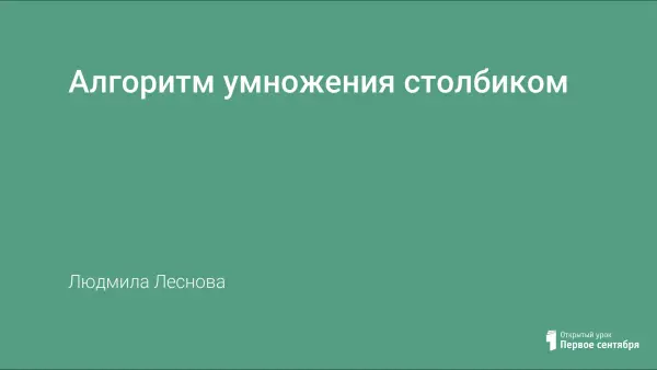 Основная дидактическая цель урока: познакомить с алгоритмом умножения столбиком, актуализировать знания о действии умножения, полученные ранее, создать условия для усвоения алгоритма умножения многозначного числа на однозначное и многозначное число; отрабатывать навыки устных вычислений; учить детей формулировать проблему, выдвигать гипотезы и находить правильное решение; развивать мышление, грамотную математическую речь.