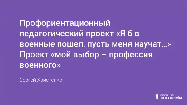 Цель проекта: создание системы профориентационной работы в учебном взводе Петрозаводского президентского кадетского училища, способствующей формированию осознанного военно-профессионального самоопределения в соответствии с желаниями, способностями, личностными особенностями.