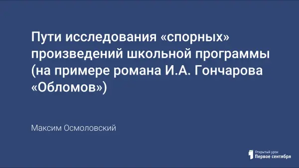 Всегда ли в художественном произведении чётко выражена авторская идея? «Положителен» или «отрицателен» персонаж? Как изучать творчество «объективных» писателей? Статья М.В.Осмоловского посвящена проблеме исследования художественных произведений, вызывающих дискуссии. Как выстроить в ходе уроков анализ «спорного» текста, показано на примере романа И.А.Гончарова «Обломов», изучаемого в 10-м классе.