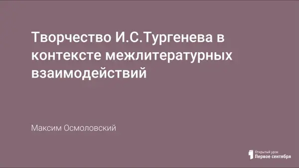 В обзорной статье М.В.Осмоловского рассматривается широкий спектр межтекстовых взаимодействий в произведениях И.С.Тургенева – от мотивов и образов древней литературы до более поздних влияний на русского писателя европейской литературы. Отдельно анализируется влияние, оказанное, в свою очередь, творчеством Тургенева на китайскую и русскую литературу 20 века.