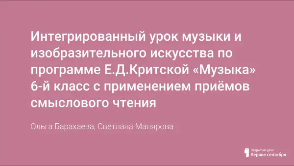 Интегрированный урок музыки и изобразительного искусства по программе Е.Д.Критской «Музыка» 6-й класс с применением приёмов смыслового чтения