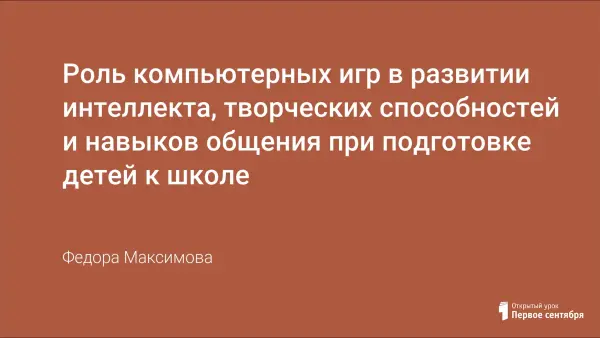 Роль компьютерных игр в развитии интеллекта, творческих способностей и навыков общения при подготовке детей к школе