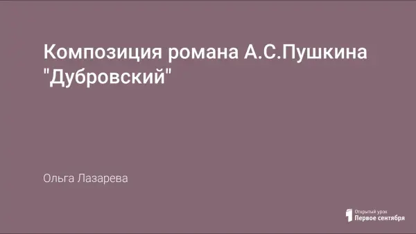 Урок посвящен изучению композиции романа А.С.Пушкина "Дубровский".