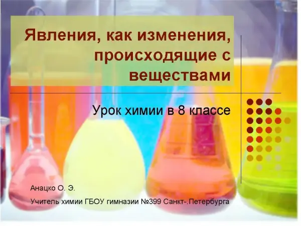 Цель урока: сформировать понятия «явление», «химическое явление», «физическое явление»; развивать умение делать выводы из наблюдаемых явлений, сравнивать и анализировать.