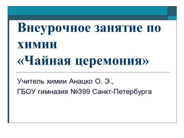 Внеурочное занятие по химии «Чайная церемония». 8-й класс