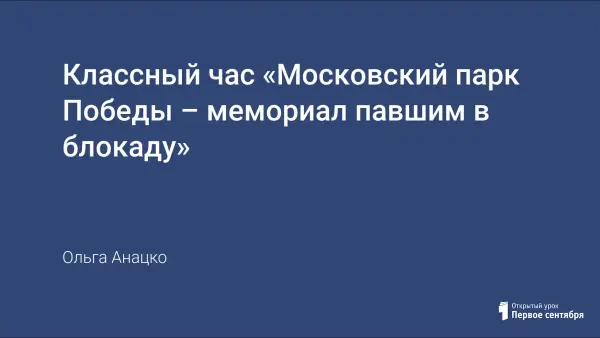 История нашего города, Санкт-Петербурга, города-героя Ленинграда неразрывно связана с Великой Отечественной Войной. В нашем городе огромное количество памятных мест, посвященных различным событиям минувшей войны, ее героям и жертвам. Данный классный час направлен на знакомство учащихся с Московским парком Победы. Классный час проходит в формате квеста по парку.