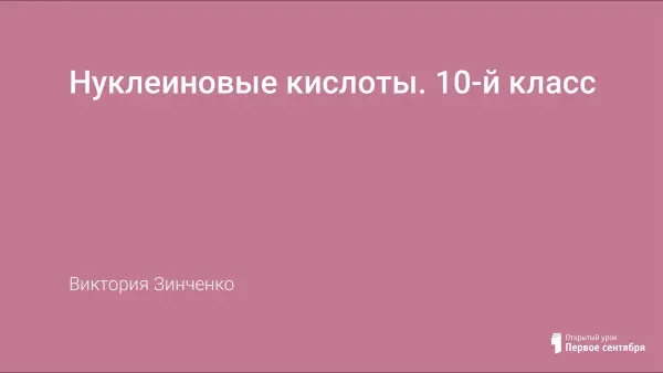 Предлагаемый урок знакомит учащихся со строением и функциями нуклеиновых кислот. Урок способствует формированию у учащихся умений сравнивать изучаемые объекты, делать вывод. Использование на уроке ИКТ повышает познавательный интерес к предмету.