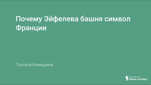 Представлена презентация по теме "Почему Эйфелева башня символ Франции".