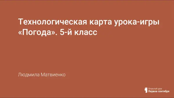 Цель урока: формирование понятия «погода», знакомство с элементами погоды и причинами её изменения.