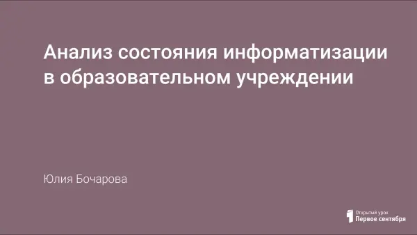 Статья поможет в работе директорам и заместителям директоров по информационно-коммуникационным технологиям при составлении ежегодного анализа состояния информатизации в образовательном учреждении.