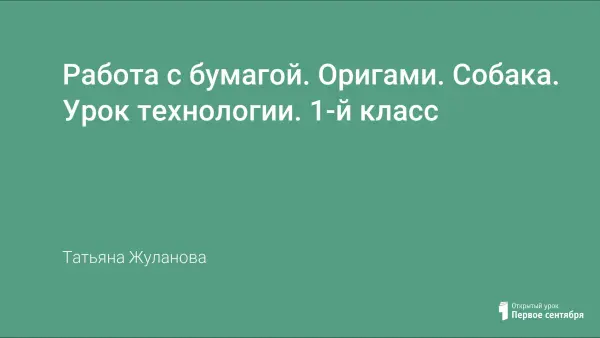 Цели урока: овладеть техникой работы с бумагой в стиле оригами, научиться делать поделку «Собака», развить коммуникативные навыки обучающихся, воспитывать трудолюбие, прививать аккуратность в работе.
