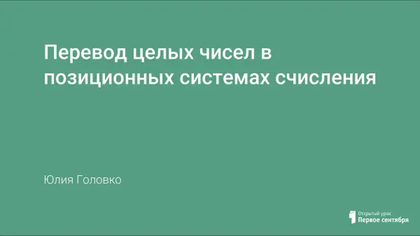 Цель урока - формирование у учащихся навыков и умений переводить числа из десятичной системы счисления в любую другую. Урок сопровождается мультимедийной презентацией. Демонстрируются алгоритм действий по переводу чисел из десятичной системы счисления в двоичную. Задания практической работы позволяют сформулировать правила перевода чисел для других систем счисления.