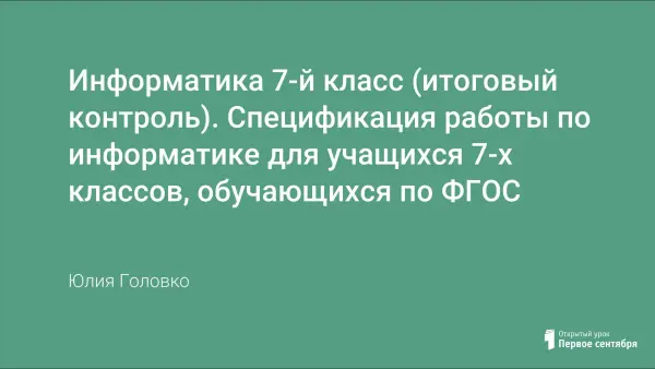 Комплект контрольных измерительных материалов предназначенных для оценивания результатов освоения обучающимися программы по информатике за 7-й класс. Контрольный измерительные материалы позволяют объективно выявить уровень знаний и учебных умений на различных уровнях усвоения материала по информатике у школьников. В работе даны задания базового и повышенного уровней сложности. Содержание заданий контрольной работы определяется содержанием рабочей программы по информатике, а также содержанием учебника для общеобразовательных учреждений Информатика. 7-й класс, К.Ю.Поляков. Контрольная работа состоит из 10 заданий: 7 заданий базового уровня, 3 – повышенного. Общее время выполнения контрольной работы 40 минут.