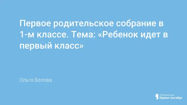 Цели проведения собрания: познакомить родителей с первым учителем и друг с другом; рассказать родителям о требованиях школы в учебно-воспитательном процессе; помочь семье подготовиться к обучению ребенка в первом классе; провести анкетирование с целью близкого знакомства с семьей и ребенком; выбрать родительский комитет класса.