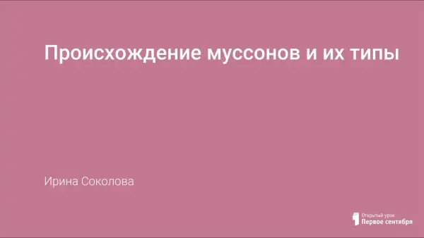 С различием в нагревании и охлаждении материков и океанов связано возникновение муссонов. Муссоны - воздушные течения, меняющие 2 раза в год (от зимы к лету и от лета к зиме) направление на противоположное. Летом и зимой они очень устойчивы, в переходных сезонах устойчивость муссонов нарушается. Слово муссон происходит от арабского «маусим» или малайского «монсин», то есть сезон. Возникают муссоны в полосе, пограничной между материками и океанами, там, где контрасты давления особенно велики.
