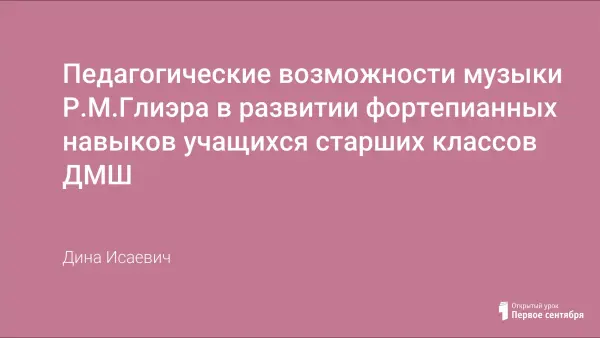 В статье рассмотрены стилистические особенности фортепианной музыки Р.М. Глиэра, изложен методико-исполнительский анализ некоторых фортепианных произведений композитора, выявляющий педагогический потенциал миниатюр композитора в развитии разнообразных пианистических навыков у учащихся старших классов, таких как: владение различными видами звукоизвлечения (legato, staccato), умение дифференцированно воспроизводить разнообразную фактуру, пользоваться педальными красками и др.