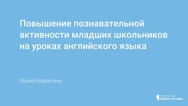 Чтобы повысить познавательную активность младших школьников на уроках английского языка, учителю следует учитывать возрастные психологические особенности детей этого возраста и проводить свои уроки в разнообразной форме с использованием современных педагогических технологий, методов и приемов, способствующих повышению мотивации к изучению английского языка. Применение наглядности, игр, песен и стихов, использование видео, аудиоприложений помогает учителю сделать урок ярким, красочным, незабываемым.