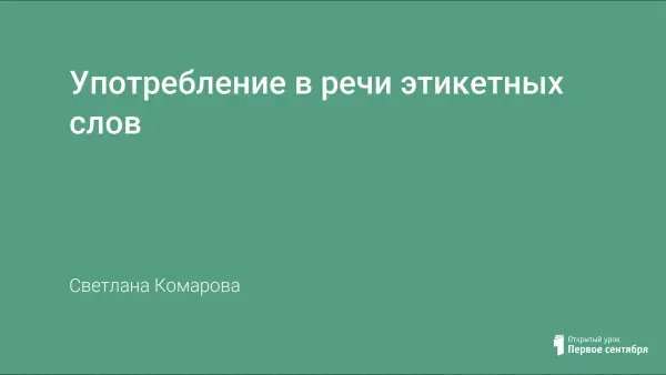 Урок русского языка в 5-м классе посвящен изучению этикетных слов. Формирует представление о речевой ситуации, тренирует в использовании этикетных слов в различных ситуациях общения. Уроки по речевому этикету воспитывают бережное отношение к слову, формируют устойчивый интерес к изучению русского языка.