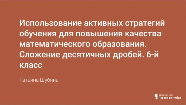 В основе реализации стратегии: «Подведение под понятие» приведен пример конспекта урока в 6-м классе по теме «Сложение десятичных дробей».