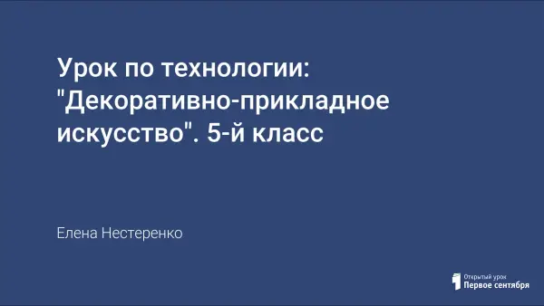 Цель урока: Организовать деятельность обучающихся по ознакомлению с видами декоративно-прикладного искусства, и запуску нового творческого проекта раздела «Художественные ремёсла».