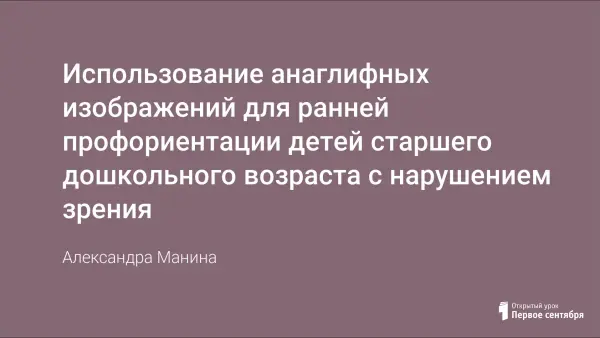 Использование анаглифных изображений для ранней профориентации детей старшего дошкольного возраста с нарушением зрения