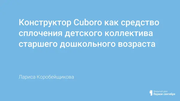 Конструктор Cuboro – изобретение швейцарского инженера Матиаса Эттера получило популярность в первую очередь в сфере интеллектуальных игр и инженерного образования. В данной статье описан опыт работы по сплочению коллектива старших дошкольников посредством применения образовательной системы Cuboro. Как целенаправленная игра с данным конструктором формирует межличностные отношения детей, становление командного духа, развивает нестандартное мышление и креативность.