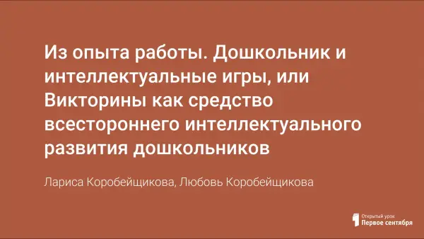 Из опыта работы. Дошкольник и интеллектуальные игры, или Викторины как средство всестороннего интеллектуального развития дошкольников
