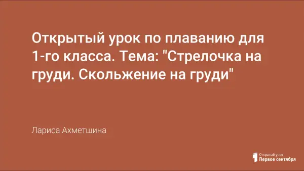 Открытый урок по плаванию для 1-го класса. Тема: "Стрелочка на груди. Скольжение на груди"