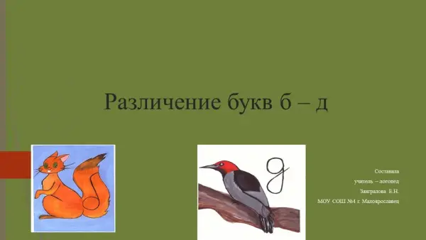 Цель урока: учить детей дифференцировать буквы б–д в словах, в словосочетаниях.