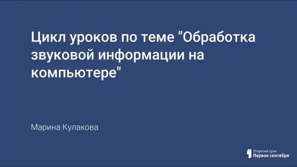 Вводные замечания. Знакомство с обработкой звуковой информации целесообразно начать в пропедевтическом курсе информатики. Приведённые уроки автор проводит для учеников 5-го класса. В процессе обучения используется стандартная программа ОС Windows «Звукозапись». Цели изучения темы «Обработка звуковой информации на компьютере»: познакомить с процессом оцифровки звука; дать понятие об основных форматах звуковых файлов; освоить приёмы записи и редактирования звуковой информации. Цикл состоит из четырёх уроков.