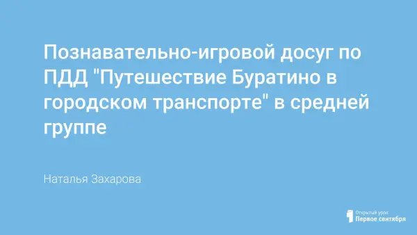 На досуг к ребятам приходит сказочный персонаж – Буратино, который своим примером показывает ребятам, как не следует вести себя в общественных местах и транспорте. С его участием моделируются различные игровые ситуации, в ходе которых педагог подводит детей к самостоятельному осмыслению сложившейся ситуации и принятию верного решения. Также детям для обсуждения предлагаются различные ситуации, которые могут произойти в транспорте и на улицах города, в процессе анализа необходимо сделать выводы на основании имеющихся у детей знаний.