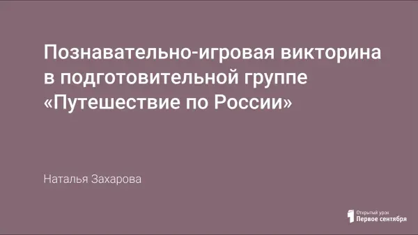 Целью мероприятия является закрепление знаний детей о России, истории возникновения страны, ее символике, природе, национальной культуре и традициях. Путешествие по России проходит в форме познавательно-игровой викторины «Что? Где? Когда?», в ходе которой детям подготовительной группы предлагается ответить на вопросы о своей Родине. Вопросы викторины посвящены различным темам, например символике государства, природе и истории России, декоративно-прикладному искусству и устному народному творчеству, достопримечательностям Москвы, известным личностям. Данное мероприятие способствует воспитанию в детях интереса к истории своей Родины, чувство любви и гордости за свою страну.