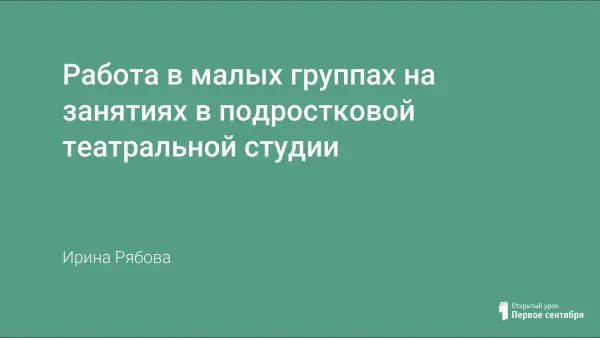 На основе многолетнего опыта преподавания актёрского мастерства подросткам автор статьи выработала свой алгоритм построения занятий. Групповые занятия по актерскому мастерству делятся на определённые этапы. Сначала – упражнения, выполняемые в творческом полукруге, (мозговой штурм, разминка, погружение в тему), примерно 20 минут. Затем упражнения, в которых заняты все присутствующие одновременно, примерно 40 минут. И завершает занятие всегда работа в малых группах (этюды и упражнения, выполняемые несколькими учениками). Они занимают всё оставшееся время, часто даже больше отведенного, потому что студийцам особенно нравится этот период.