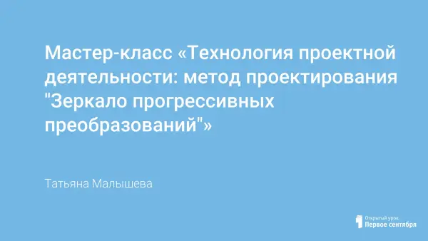 Среди инновационных педагогических технологий особое место занимает проектная деятельность, в основе которой лежит системно-деятельностный подход. Методический семинар проводится с использованием той технологии, которую предстоит изучить, освоить, внедрить. Целью мастер-класса является ознакомить педагогов с методом проектирования «зеркало прогрессивных преобразований», который можно использовать на первом этапе проектной деятельности «погружение в проект».