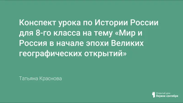 Цели и задачи урока: познакомить с основными причинами и последствиями Великих географических открытий; выявлять специфические особенности русских географических открытий; характеризовать историю России как часть мировой истории.