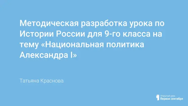 Цели урока: охарактеризовать национальную политику Александра I; выделять особенности управления национальными окраинами.