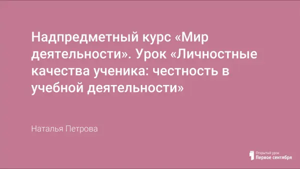 Цели формирования знаний: сформировать представление о понятии честность в учебной деятельности.
